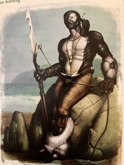 The Darfellans were once a peaceful race of hunter-gatherers who lived among the surf and sea stacks of foreboding coastlines. Then the sahuagin discovered them, beginning a century-long struggle that almost ended in the extinction of the darfellan race. The remaining darfellans are brooding wanderers who crave the chance to exact a final measure of vengeance against the sahuagin who wiped out their kin.